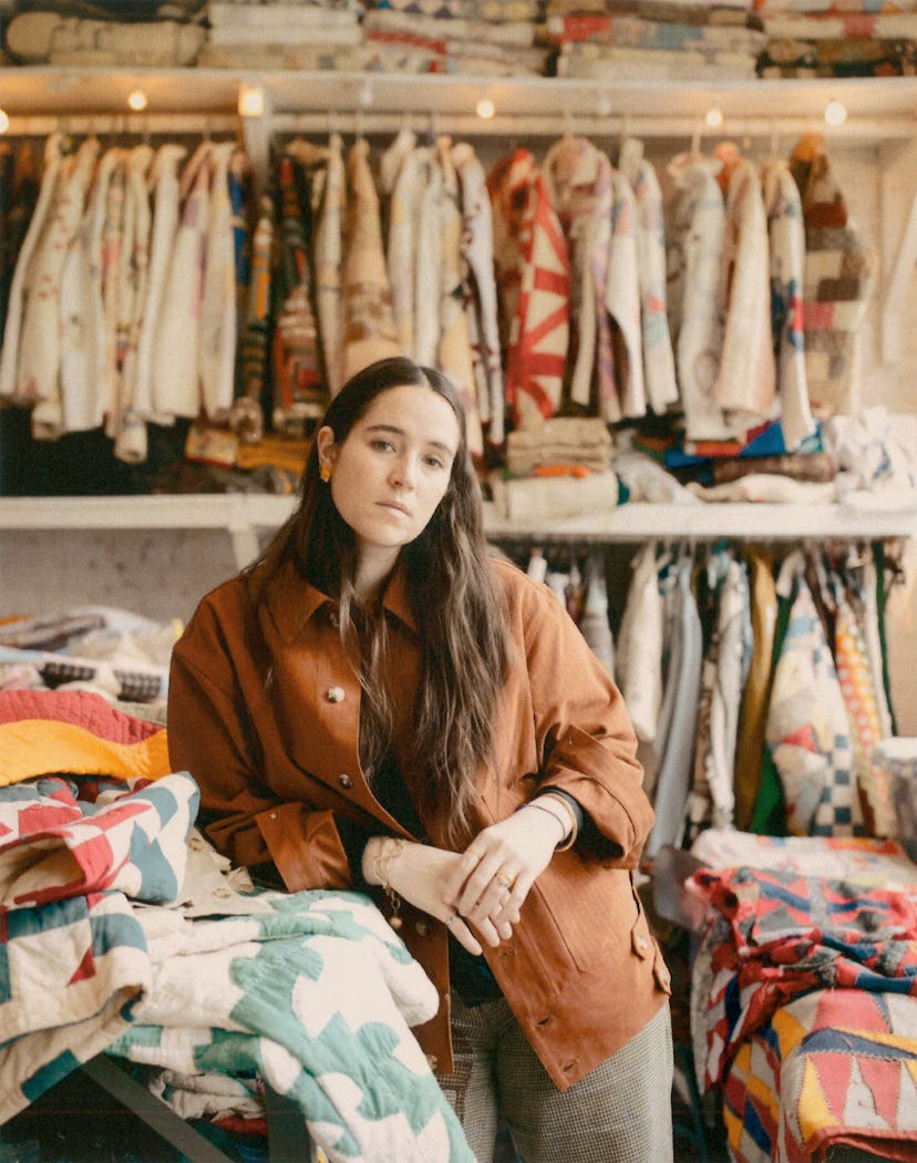 On Tuesday night, inside her boutique in Manhattan’s Chinatown, Emily Adams Bode sat on a couch surrounded by quilts of all patterns and colors. Although patchwork has become synonymous with her menswear brand, Bode, the blankets served another purpose that evening: quilts are the center of Bode’s new collaboration with Microsoft, a digital archive called the Bode Vault. The library contains vintage fabric patterns that Bode has been collecting almost her whole life, detailing the history associated with each one. Along with her 2019 win of the CFDA Emerging Designer of the Year Award, the Microsoft project is proof that Bode and her namesake indie label are on the rise. In the midst of that rapid ascent, the designer took a moment to reflect on her burgeoning business, her personal style, and what she’ll be wearing to her upcoming wedding.