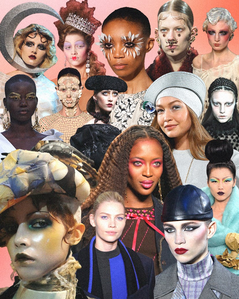 You know you’re an icon when you can start referencing your past work, which is seemingly what McGrath did when she worked on the Valentino spring/summer show in September 2019. The models walked the runway in golden, jewel-encrusted eyes, eyebrows, and lashes, evoking a more-toned down version of her makeup from the Dior spring/summer 2004 presentation. This time around, however, the lines were much more modern than McGrath’s designs from 16 years earlier, as the makeup artist made the decision to keep the rest of the models’ faces clean, so all the focus remained on the golden eyes.