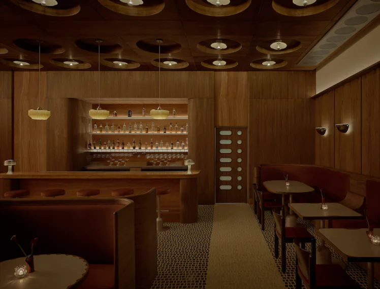 Wilmot—previously of the Hollywood French bistro Gigi’s and the East Village burger restaurant Whitman’s—and his partners Michael Kassar, Mike Moonves, and Kristin Olszewski, sought to emulate the energy of Milanese bars. He was particularly struck by Bar Basso, a historic cocktail bar where they serve “head-sized” negronis. “We will be featuring a Negroni di Basso, which is a double negroni in these giant, monstrous, hand blown glass goblets,” says Wilmot. There will be food, too, including breaded chicken cutlet with a soubise of guanciale and caper poured tableside, as well as a penne di bello with Normandy butter, parmigiano, and fresh basil. The menus, and general creative direction, were provided by Special Offer, Inc., whose other clients include Charli XCX and Rosalía.