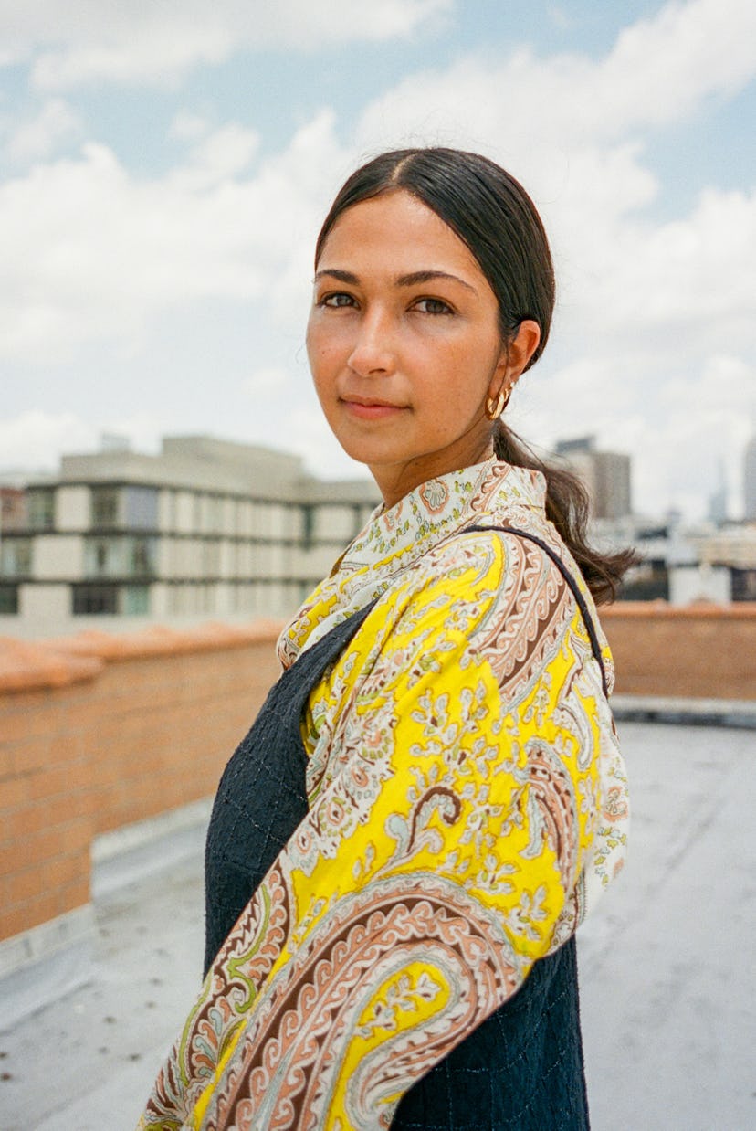 I love Melody Ehsani. I always wanted to get her cherry earrings at her shop on Kenmare Street in New York, but it closed during the pandemic, so I didn’t get the chance. Dorian Who, a Canada-based designer, is fantastic—the way she builds her pieces is really artistic. I also love Zarin Nasr, an Iranian calligraphist designer who does silk printing by hand on different caftans and robes, and Maryam Nassir Zadeh is one of my favorite designers as well. I’ve been wearing her silver sandals a lot this summer.