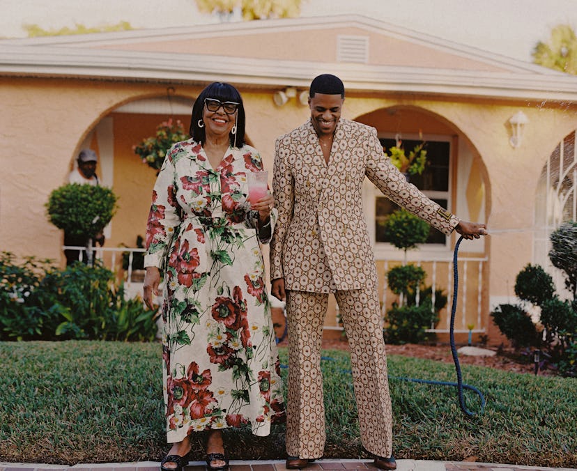 If you’d like to get to know the actor and Broadway star Jeremy Pope—truly understand his ambition, his artistic spirit, his friendly and warm nature—you should meet his family. Through his latest passion project, a photographic series featuring his closest kin, he’s introducing the people who raised and shaped him to the world. Pope, who has appeared in Pose, Hollywood, and the plays Ain’t Too Proud and Choir Boy, released the first iteration of this series last summer, when he styled, shot, and art directed something of a family photo album with his grandfather and dad for Father’s Day. The next installment, shown here, features a family member Pope is incredibly close to: his grandmother, Ann Hardison.