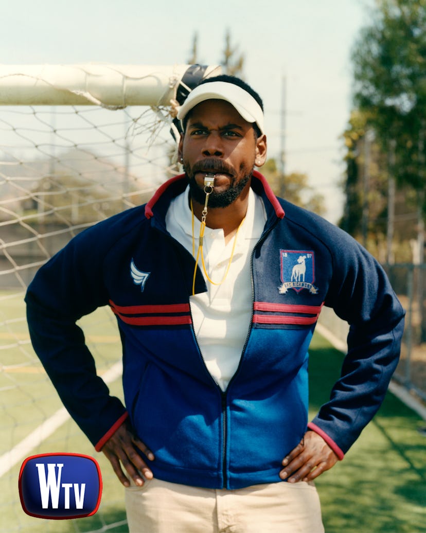 Quincy Isaiah as Ted Lasso from 'Ted Lasso.' Isaiah wears Ox & Bulls Leather Company.