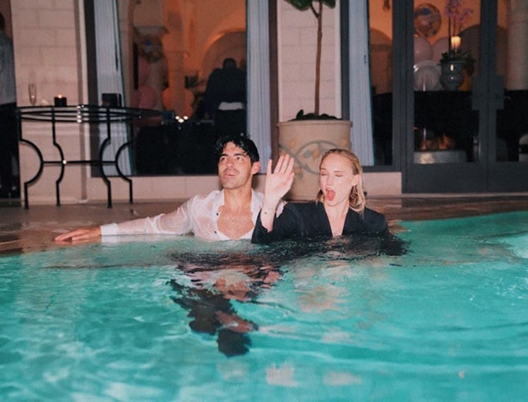 Sophie Turner and Joe Jonas’s first Las Vegas wedding was supposed to be a secret until Diplo couldn’t help but whip out his phone and share the shenanigans on his Instagram stories. “I love Diplo, but he loves his ‘gram more than a 13-year-old,” Jonas said at the time. “He posts every five seconds. He literally, like, live-streamed with dog face filters.” In contrast, it took Turner two entire years to finally give us an official look into the shindig, and it certainly looked a bit wilder than we imagined. Yes, there is a shirtless, sweaty Diplo in the background of one photo, but we also get a closer look at Turner’s Bevza wedding jumpsuit, Priyanka Chopra partying in a robe, and the newlyweds jumping into a pool, fully clothed.