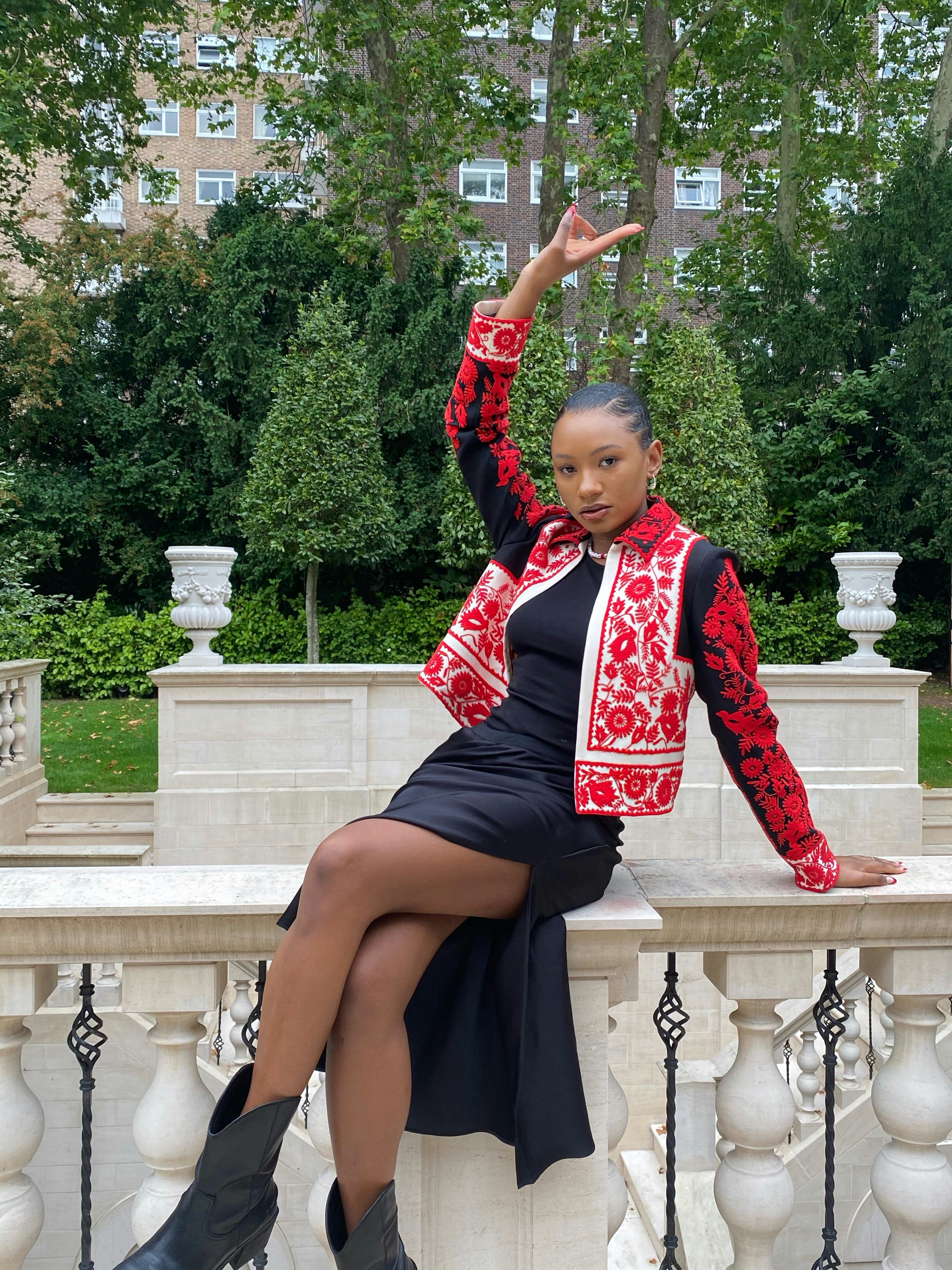 “I don’t really feel like I have a specific style, [but] I think I gravitate toward looks that are quite pared-down,” she says. “I like to think it’s timeless. I’m not trying to jump on every trend. I just like to feel comfortable, take a couple of risks, but keep it clean and fun.” With acting, Otedola is trying to lean into a more spontaneous side of herself that will allow her the flexibility to explore a new creative frontier. Even the way she got into acting, a job she’d never considered before, was, to some extent, unplanned.