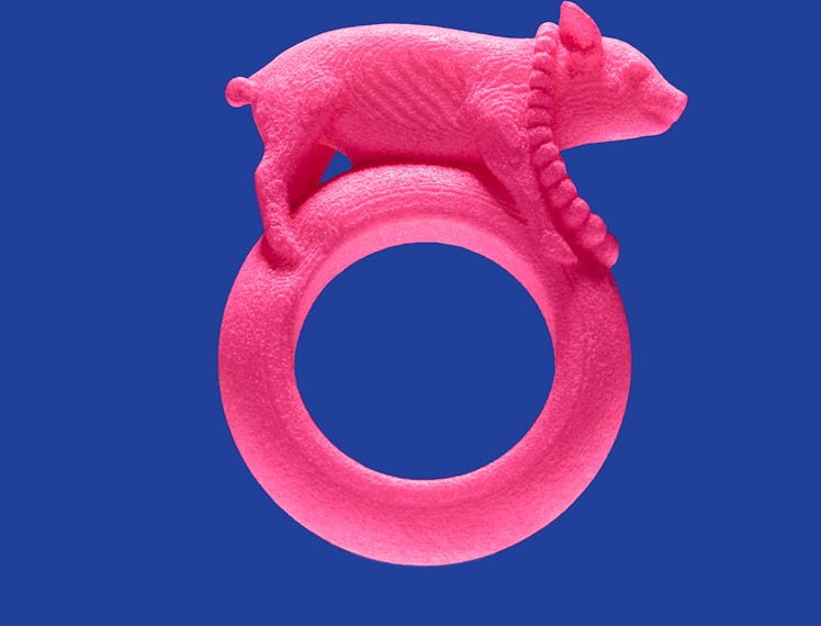 The 100 pieces in Ring Redux have been forged by artists who’ve breathed new life into the age-old form with distinct styles and a contemporary sensibility. Each ring demonstrates the featured artists’ thought-provoking ideas, innovative techniques, and individualism that gracefully stride the boundary between traditional and unconventional. Lewin’s collection includes works dating from the 1950s to the present, and she explains what initially drew her to the space: “My collection of contemporary art jewelry actually started with a ring designed by Vivianna Torun Bülow-Hübe, which is included in this exhibition,” she recalls, explaining how she was instantly taken by jewelry’s convenience as a collectible. “[Jewelry] is small, easy to travel with, and you can wear it. It’s also affordable — you don’t need to get a loan to purchase it!” From then on, she remained tapped into this vibrant field, meeting and collecting from artists — many of whom she now calls her friends. As objects, rings are more than meets the eye, transcending their sparkling aesthetic appeal and enduring as symbols of infinity. “Like all art, these rings are connected to the moment they were made,” Lewin explains. “They are a window into an artist’s world.”