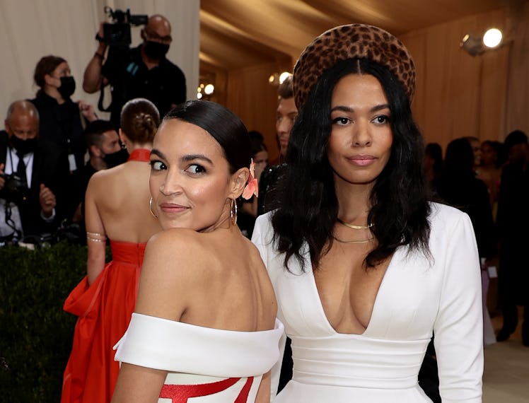 Ocasio-Cortez was joined by Brother Vellies creative director Aurora James, and they discussed the crucial meaning of the dress with host Keke Palmer. “We had a conversation about what it means to be two working-class women of color at the Met, and we can’t just play along...we need to challenge the institutions. The Met is known for its spectacle, but we should have a conversation about it.” She also told Reuters that it’s time for “all classes” to talk about a fairer tax code, not just working-class activists and families. See more photos of her look below.
