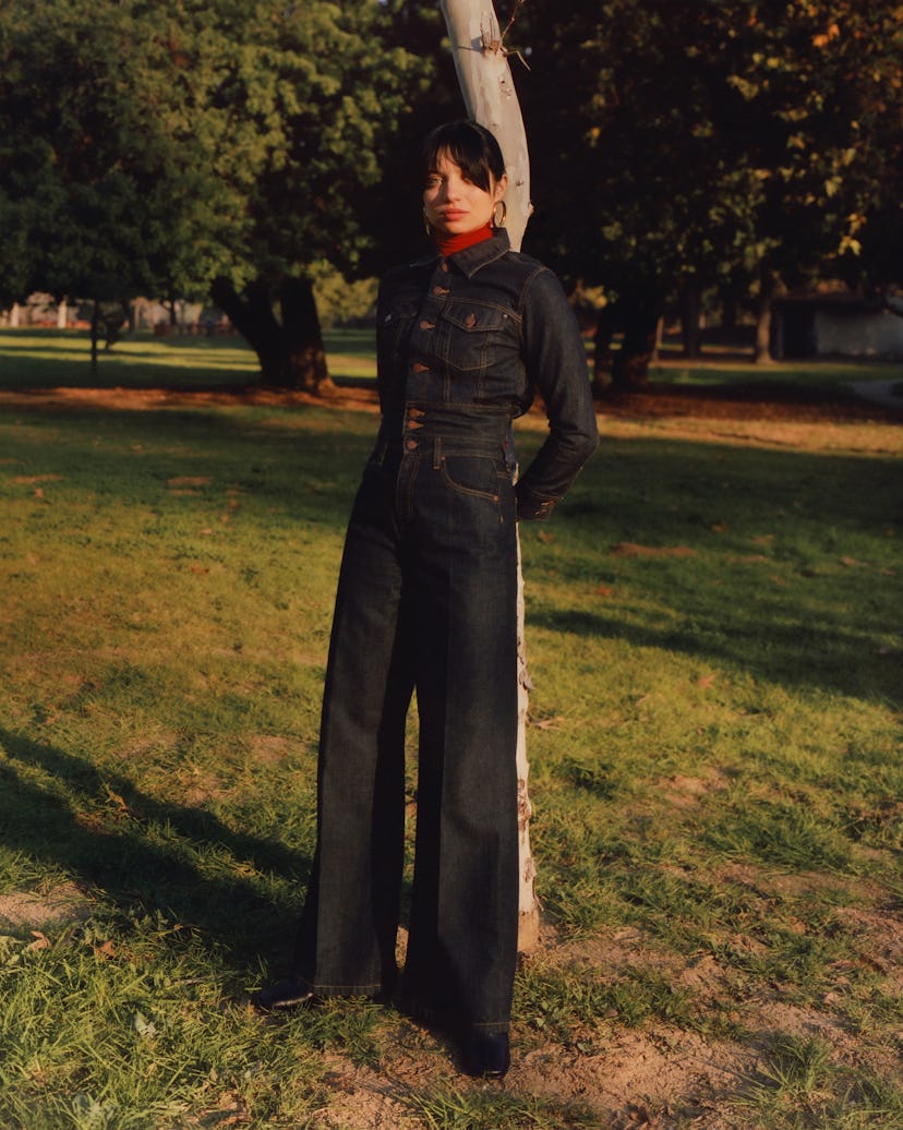 When asked about what an “everyday Ganna outfit” would look like, Bogdan herself had a hard time answering, unable to box the entirety of her look into a singular aesthetic. Currently living in Los Angeles but originally from Ukraine, Bogdan is her own version of the modern city girl, drawing as much inspiration from the sunny ‘70s as she does Eastern European rave culture. Here, she’s serving utilitarian workwear with a modern edge, while doubling down on vintage-laced denim — a masterclass on how to pull off the Texas Tuxedo. Travel then from Austin to Kyiv with a pair of oversized trousers that would fit in at any underground club.