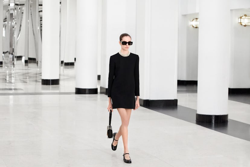 Audrey Hepburn, mod ’60s style, a fateful car mishap—all things that were likely on Hedi Slimane’s mood board when designing his latest pieces for Celine’s “La Collection de l’Arc de Triomphe.” The winter 2024 showcase depicts a step in a more prim direction for the designer, who has been heralding carefree chic for much of his tenure at the house. This time though, strands of pearls and coordinated sets take center stage, as Slimane and Celine introduce their newest offerings, including the house’s first beauty line.