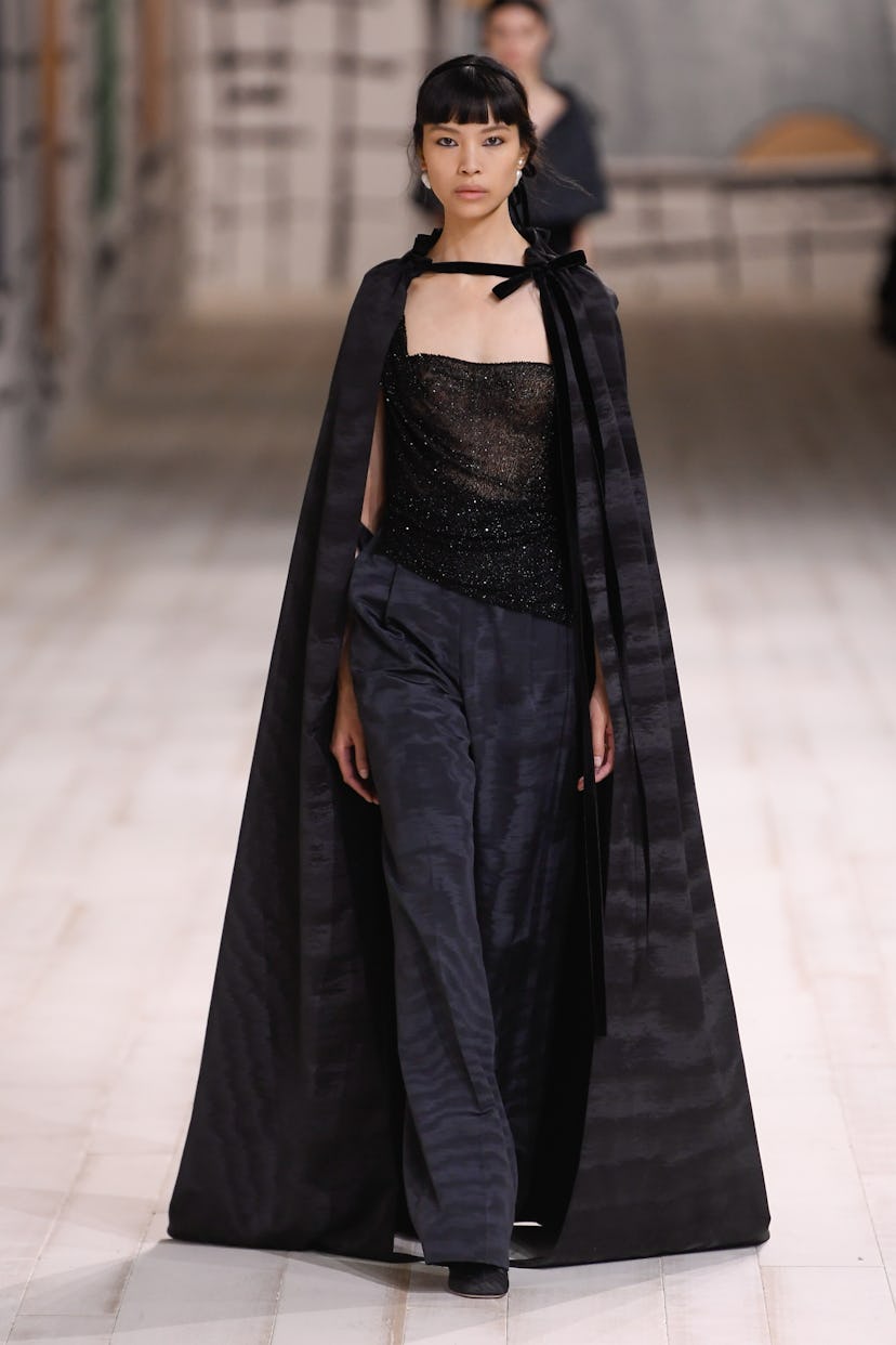 The core of the collection comprised pieces that prioritized wearability over fantasy. Chiuri took the everyday, the mundane, and proved that it could have a couture attitude—at least, in her world. Much like the poem that was read aloud, spring 2024 was a subtle study of women, what they wear, and how their clothes are made. “Rag or brocade, every women textile thus results from this enforced embrace, a grand design that only human minds are meant to grasp and execute; and thus a marriage that could not in nature ever find its place,” Sanchez recited. “Take the spider, poor thing. It dupes. The spider doesn’t weave; the spider glues.”