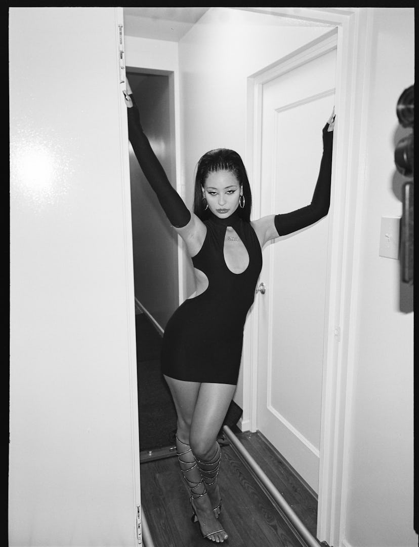 For Jenn, paying homage to Aidan’s mother and the women in her family, as well as Y2K Mexican pop stars like Paulina Rubio and vedettes from the ’70s and ’80s, guided her into a sort of autopilot on set. “The merge of influences really helped me connect to my body and the moment to tell a part of our story,” she says.