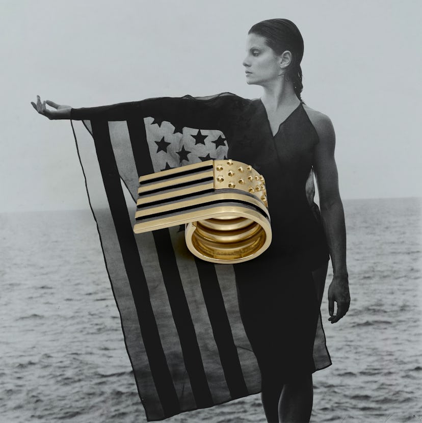 Repossi’s aim with this collaboration was to preserve Mapplethorpe’s spirit and aesthetic through elevated craftsmanship. To kickstart the three-year creative process, Repossi was given access to Mapplethorpe’s entire archive of jewelry and jewelry materials, which are currently housed at the Getty Research Institute in Los Angeles. She also found inspiration in his photographs, collages, and artworks, and his use of found objects in his practice. “This collection is a tribute to his genius aesthetic and the beautiful items he assembled,” Repossi says.
