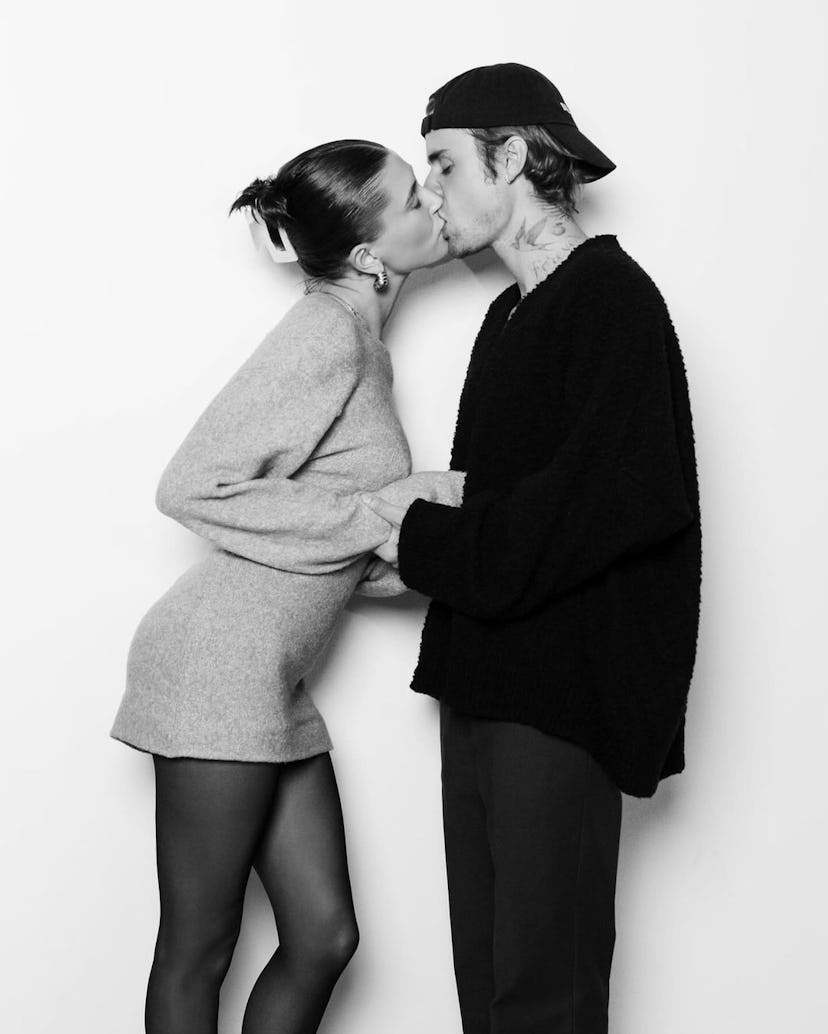 Hailey & Justin Bieber Share a Kiss In His-and-Her Knits