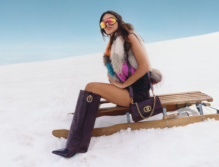 For fall 2025, Kurt Geiger is on a mission to make even the coolest temps look extra hot. At the center of their latest campaign is Emily Ratajkowski, sizzling in a cinematic snow-capped setting. Ratajkowski shares the spotlight with the brand’s signature bold accessories. On boots and bags, striking embellishments and high-impact colors catch the sun’s rays, reminding us that style can brighten even the darkest month.