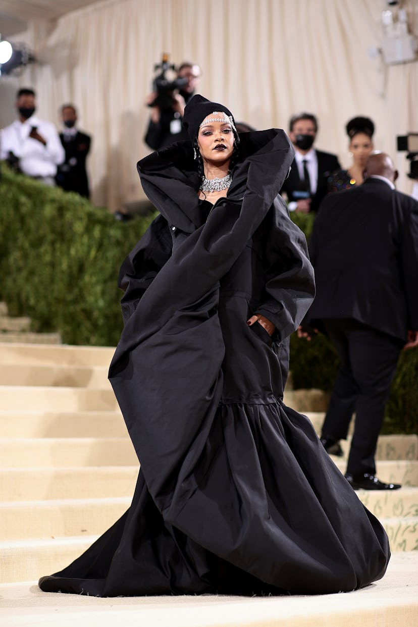 The first in-person Met Gala since 2019 is officially underway—and two years of being cooped up at home has clearly provided celebrities plenty of time to mull over the most fanciful, whimsical, and exciting fashion creations they’d like to wear once red carpets open up again. And open up they have, in spectacular manner. Just one day after IRL New York Fashion Week, the Costume Institute Gala has rolled its own carpet out for stars including Billie Eilish (who channeled “Holiday Barbie,” and Marilyn Monroe with her sparkling ball gown and voluminous blonde hairdo), Lil Nas X (whose multilayered disrobing called to mind Lady Gaga at “Camp” in 2019), and Timothée Chalamet. Most are decked out according to the theme, “In America: A Lexicon Of Fashion,” while others have worn a loose interpretation of that motif. But isn’t the Met Gala all about bringing your own take to the table, anyway? However the stars like Naomi Osaka (who brought together her Haitian and Japanese heritage with a can’t-miss hair look) and Saweetie (whose rose, gold, white, and blue train had to be adjusted by not one but two attendants) chose to pay homage, these are our favorite looks from the 2021 Met Gala.