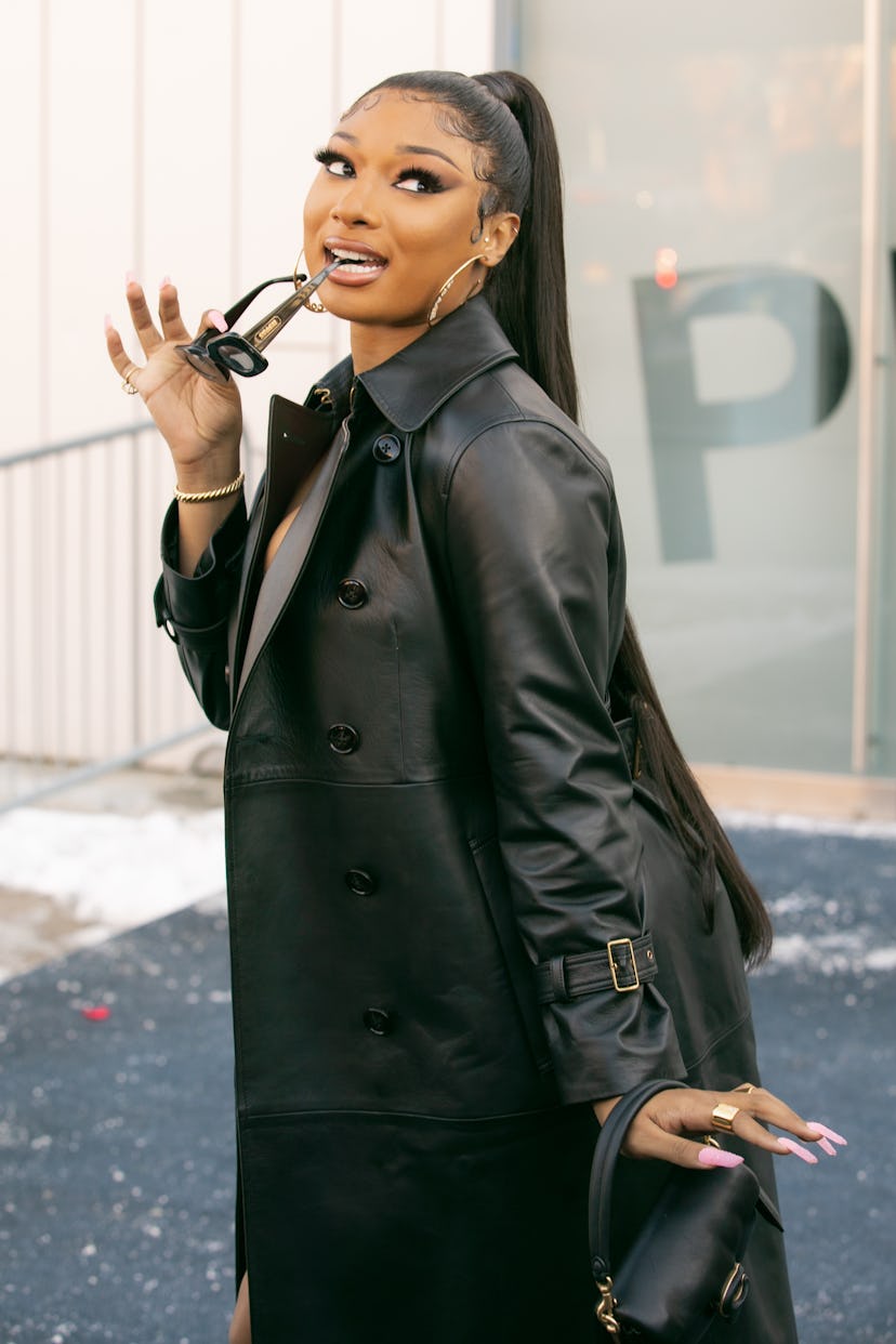 Megan Thee Stallion outside of the Coach Fall 2022 runway show.
