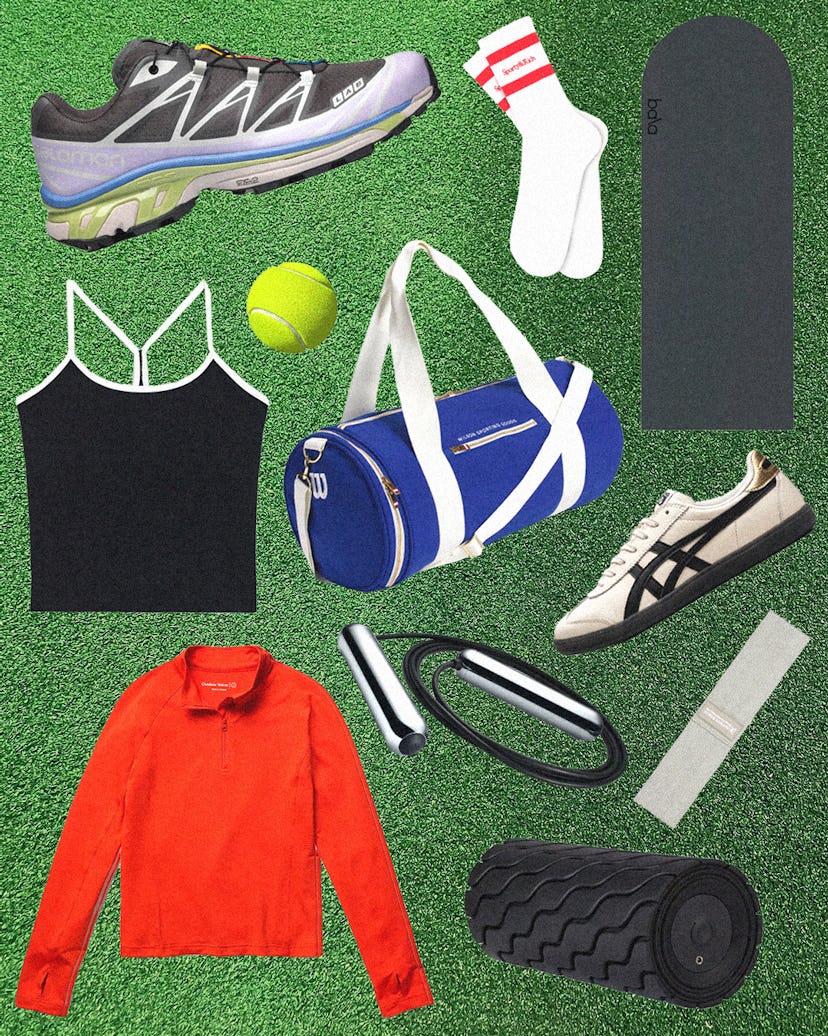 The best workout gear works just as well out in the world as is does on the mat. While it can be tempting to invest in the highest tech sneakers and the the most tricked out fitness tracker, the secret to feeling good during whatever heart-pumping activity you choose is to wear clothes that make you feel like comfortable, stylish, and like yourself. A non-frumpy pair of sweats, like the Skims joggers, can take you effortlessly from dance class to lunch, and a matching set from Alo looks perfect on its own at pilates and effortlessly chic with boots and a big sweater for the walk home. Ditto your accessories: why not spring for a water bottle that you’ll want to use all day? Or a pair of sneakers you won’t feel like a dad in when you pair them with jeans? And if you’re on home workout kick, now’s the time to upgrade your setup with props that will make it easy and exciting to roll your mat out on the daily, like a sleek jump rope and a tension-dissolving foam roller. Whether you’re starting a New Year’s resolution-inspired routine or just looking to refresh your kit, these picks are sure to find a permanent spot in your fitness rotation—and maybe even make it a bit more fun.