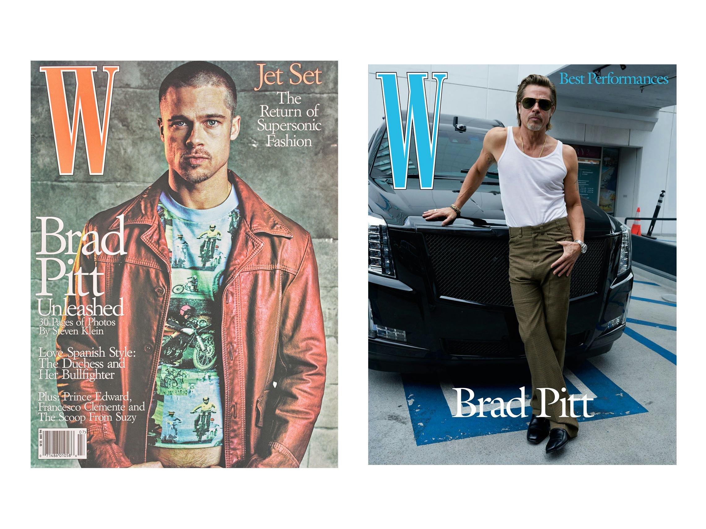 Left: Brad Pitt photographed by Steven Klein for W Magazine, July 1999.