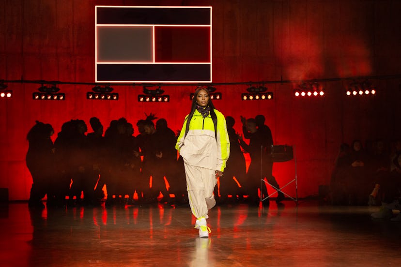 The casting at Tommy Hilfiger‘s fall 2020 London Fashion Week show blew all other model lineups out of the water. The see-now-buy-now presentation showcasing a collaboration between Lewis Hamilton and the musician H.E.R. didn’t reinvent the wheel—streetwear-inspired pieces including hoodies, bomber jackets, and mesh shirts were worn over sports bras. Nor were the accessories like bucket hats and neon backpacks anything to write home about. But when Naomi Campbell opened the show while a crew of live singers rapped and danced behind her, the performance took on new life. Luka Sabbat, Lindsey Wixson (who has been creeping away from her claims of retirement this Fashion Month), Winnie Harlow, Georgia Jagger, and many more walked. In classic Tommy Hilfiger fashion, they all flooded the runway at once for final looks, with Tommy himself leading the pack. See the highlights you may have missed from the energetic presentation, here.