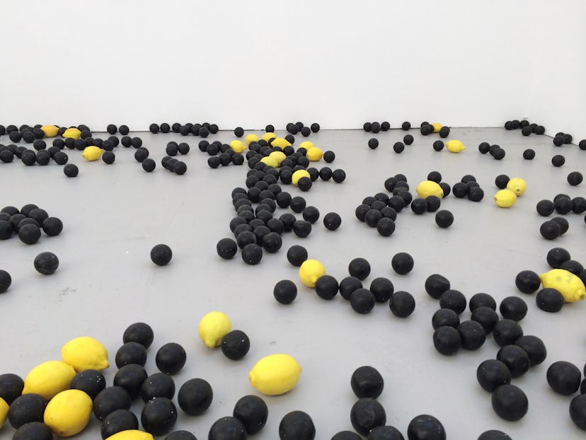 Installation view of Untitled Iron Oxide, Soap, Lemons, 2014. Courtesy of Ellis King Gallery, Dublin.