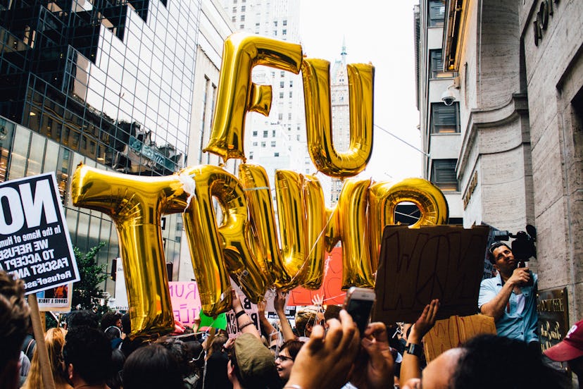 On Monday night in New York, more than a thousand New Yorkers and tourists gathered once again to protest at Trump Tower—this time, with the president in attendance, for the first time since his inauguration. His homecoming was an unfortunately special occasion in more ways than one: It also marked the public’s most direct opportunity to air their frustrations directly at Trump for his much delayed condemnation of violent white supremacists over the weekend, when a woman was killed and 19 more were injured at a white supremacist rally in Charlottesville, Virginia. But it was so much more, the airing of so many grievances built up over the last excruciating eight months. Unsurprisingly, a man not known for his thick skin, Trump reportedly snuck in through the tower’s back entrance, making sure the crowds added “coward” and “shame” to chants like “New York hates you” that had been resounding down Fifth Avenue for nearly six hours throughout the night.