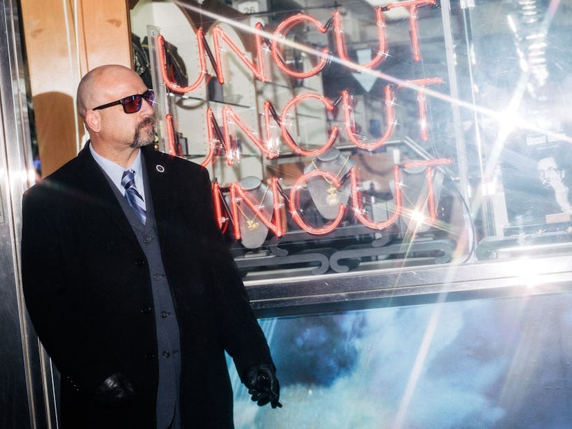Ronald Greenberg, from the cast of Uncut Gems, inside the Uncut Gems Pop Up, held at the Diamond District in New York City. Photograph by Mark Sommerfeld for W Magazine.