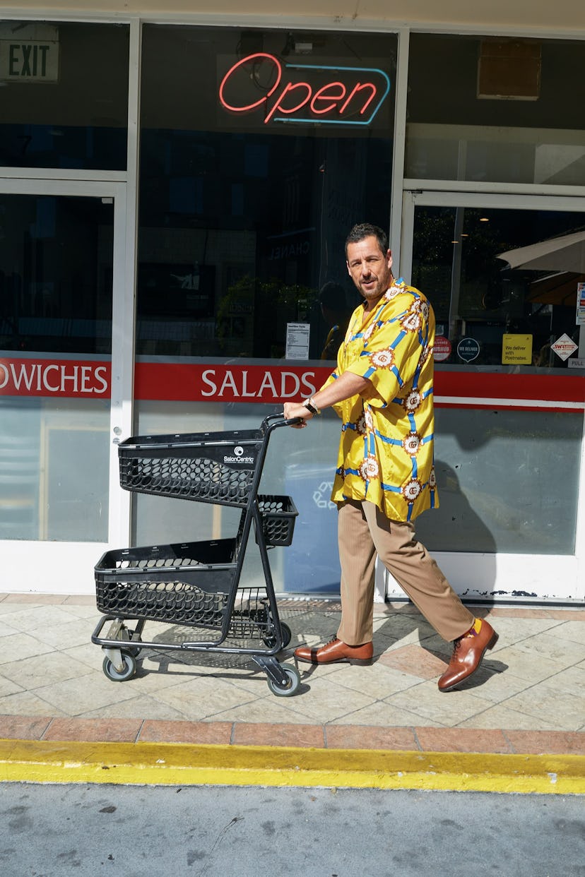 “The Safdie brothers knew the world of 47th Street—the ins and outs of it—and in order for me to get comfortable and be the best I could be as the character, we went there a lot,” Sandler says. “Got to know so many guys who owned shops, who work in shops, spend days with ’em and watch them do their thing.”