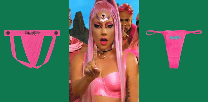 Though, Gaga seems to have an ace up her sleeve (or an elastic band up her pantleg, as it were) to help goose album sales: a certain segment of her fanbase’s love for jockstraps. Yes, the official Chromatica jockstrap is all part of the album’s release strategy, alongside a corresponding hot pink thong, as well. Both pieces of clothing seem to have the Internet in an absolute tizzy.