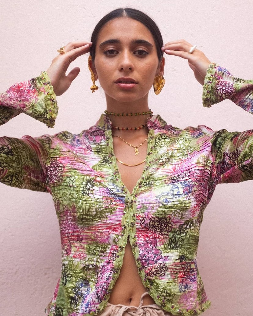 In these designers, Karvinkop has discovered people looking to break the mold: intertwining gold-plated jewelry with office wear, Mughal-era prints with minimalist silhouettes, and utilising authentic, home-grown fabrics. No Border is home to brands like Rastah, a Pakistani streetwear label, and designers like Negine Jasmine—an Afghanistani artist who specializes in embroidery. The artists she features in her shop also exemplify a larger movement happening within Southeast Asian fashions, as the styles traditionally associated with the region gain new life, reimagined by a wave of young creatives.