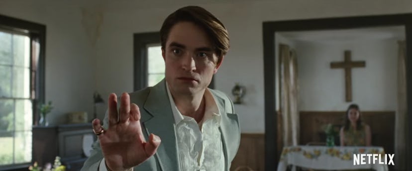 Midway through the trailer for The Devil All the Time, which Netflix just released today, Robert Pattinson appears. Over the years the actor has been cast as a vampire, a caped crusader, a bank robber, and a lighthouse wickie. But now, he finally gets to flex on screen as a corrupt preacher, and according to this trailer, he appears to be going full Eli Sunday (real There Will Be Blood fans know), albeit in a powder blue suit and ruffled white shirt for this role as Preston Teagardin.
