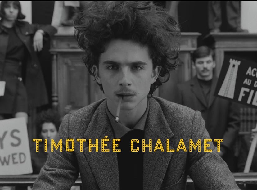 Chalamet, in all his mustachioed glory, plays a character named Zeffirelli, who is based on student protesters involved in the May 1968 riots in Paris.